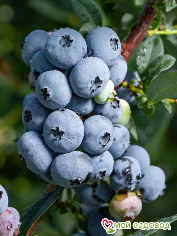 ☀️ Высаживать саженцы голубики с закрытой корневой системой можно на протяжении всего вегетационного периода (весна-лето-осень). Посадку голубики весной в открытый грунт следует проводить после исчезновения угрозы возвратных заморозков, когда воздух прогреется до 10-15⁰С, но до распускания почек (в апреле-мае). Таким образом, саженец будет иметь достаточно времени, чтобы укорениться и адаптироваться к новым условиям. Осенью к посадочным работам приступают в конце сентября-начале октября.. после того, как растение закончит вегетацию и останется без листьев. При этом оно будет иметь в своем распоряжении 3-4 недели до устойчивых морозов для укоренения. Одна порция голубики (100 грамм) даёт организму столько же антиоксидантов, сколько пять порций брокколи или яблок. Послевкусие — винное, без терпкости. Форма плодов не круглая, а слегка приплюснутая. По мере созревания ягоды формируются в плотную гроздь, хорошо удерживаются на кусте, но при передержке в спелом виде постепенно начинают опадать и становятся более мягкие. Вот почему так важно своевременно собрать урожай. Преимущество сорта: хорошая зимостойкость; помимо высоких вкусовых качеств, обладает ещё и декоративностью; высокая продуктивность, интенсивное разрастания кустарника; самоплодный сорт; ягоды прекрасно подходят для домашних заготовок. А знали ли вы, что голубика способна … снижает температуру; оказывает противосклеротическое воздействие;  нормализует уровень сахара в крови; облегчает боли при цистите, энтероколите; показана больным при гастритах (если кислотность желудочного сока понижена); очень полезна при анемии, заболеваниях сердца; детям дают эту полезную ягоду в качестве источника витамина С;  сок голубики улучшает память у пожилых людей. ПОСАДКА Перед посадкой полейте растение в контейнере и дайте ему постоять, чтобы можно было легко вынуть саженец из контейнера не повредив корневую систему. Подготовьте посадочную яму глубиной и шириной примерно 0,5 м. Добавьте в неё кислую песчано-земляную смесь (лучше если это будет специализированный грунт с повышенной кислотностью рН) и перемешайте с почвой, вынутой из ямки. Можно улучшить структуру почвы, добавив кислого торфа. Посадите растение так, чтобы оно оказалось на несколько сантиметров ниже, чем оно сидело в горшке. Слегка уплотните землю вокруг саженца и еще раз полейте как следует. Для предотвращения испарения влаги покройте почву слоем мульчи (опилки, кора) толщиной 5-8 см.  Это позволит решить и ещё ряд проблем. Во-первых, слой мульчи позволит избавиться от сорняков, во-вторых, отрегулирует водно-воздушный и температурный режим верхнего слоя почвы (т.е. почва не пересыхает и не перегревается), в третьих, он улучшит освещённость куста, в четвёртых, поможет бороться с болезнями.